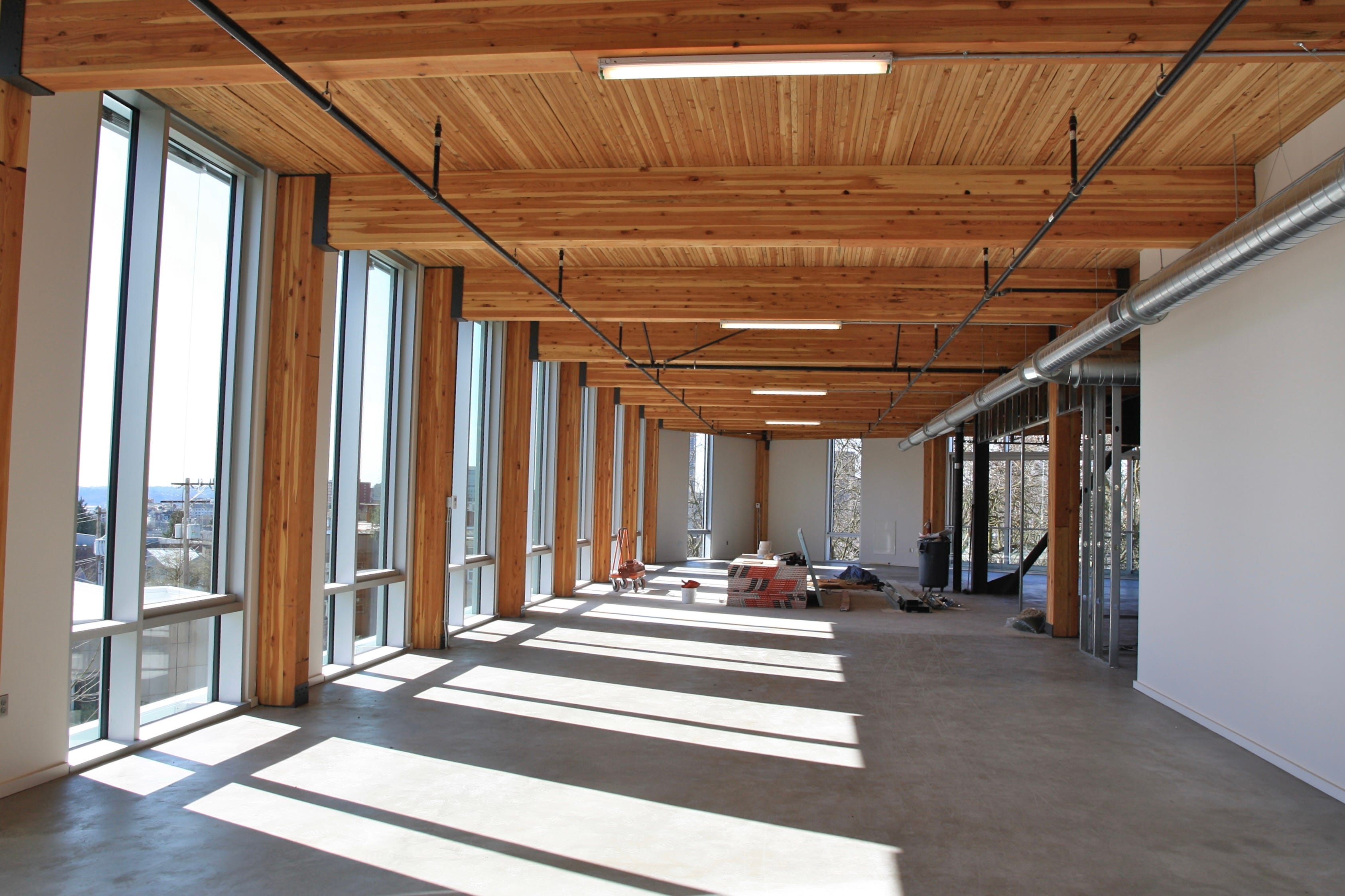 Some regions adeptly harvest the economic advantages of green building innovation. Bullitt demonstrated the advantages of “mass timber” (wood strands glued together to form engineered columns, beams, and panels for walls and floors that replace environmentally damaging steel and concrete). This new kind of wood has become the biggest excitement in forest products since plywood. Mass timber elements were also used at Kendeda, and helped draw the attention of Southern yellow-pine producers, which have since built mass-timber manufacturing plants.